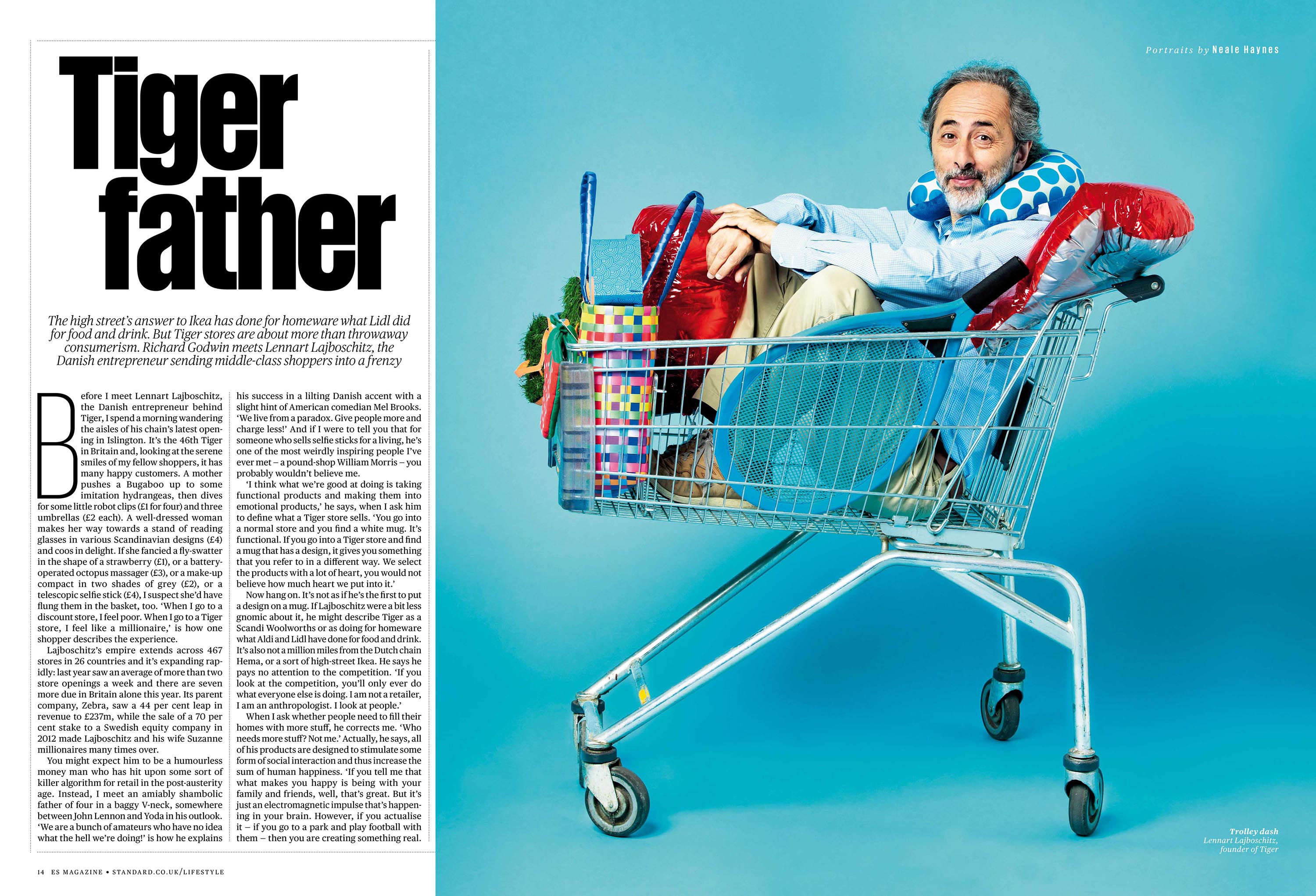 Danish entrepreneur and owner of Tiger Lennart Lajboschitz photographed in London for ES magazine